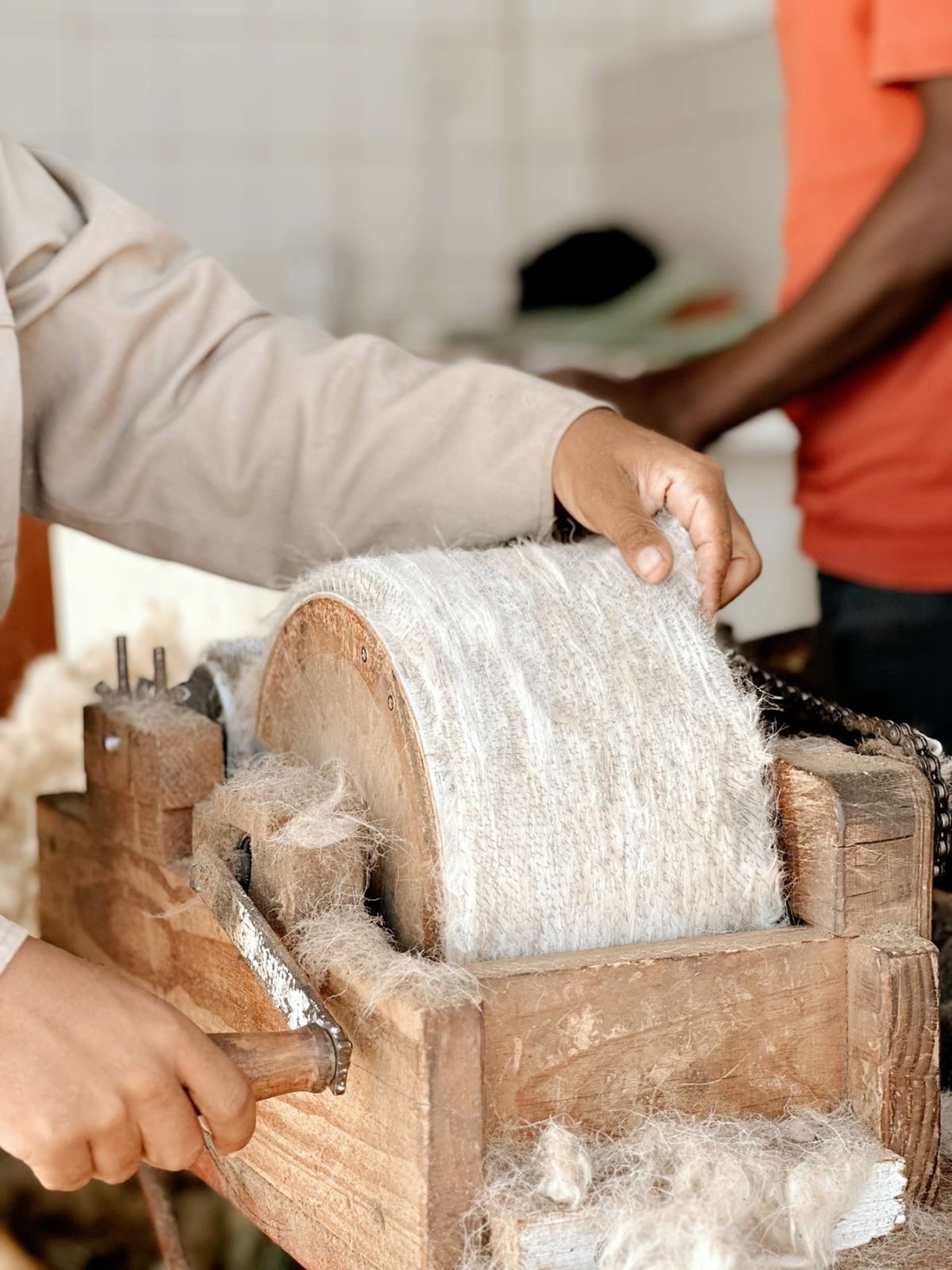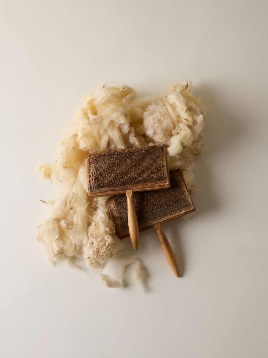 Coarse guard hairs are meticulously separated from the fine undercoat using traditional wooden carders, ensuring only the purest fiber remains.