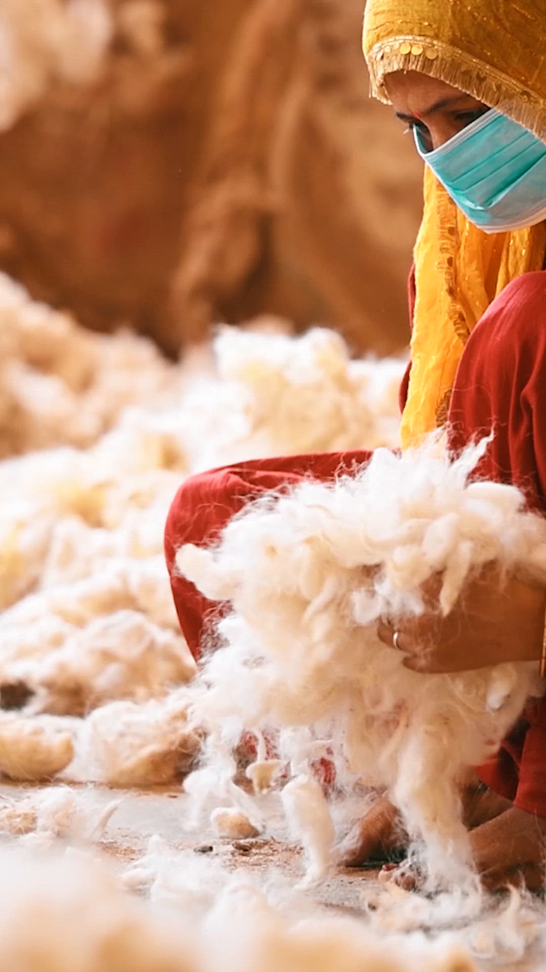 The raw fiber is carefully washed and cleaned by hand, removing impurities while preserving the natural softness and luster.